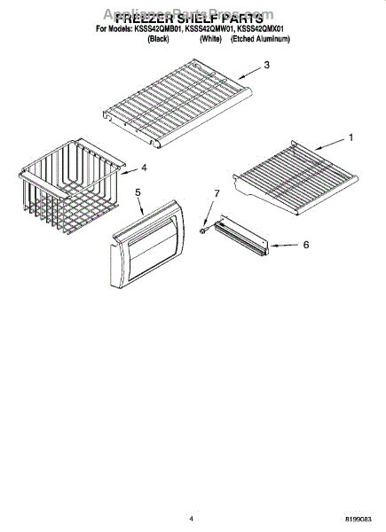 Parts for Kitchenaid KSSS42QMX01: 03 - Freezer Shelf Parts