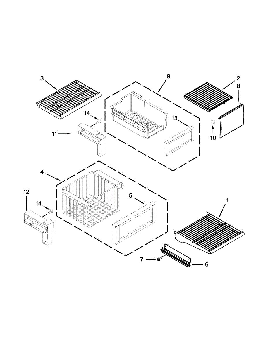 A replacement freezer basket that restores organized storage and keeps frozen items accessible. Fits into the freezer compartment to hold packaged foods and loose items securely for everyday use. What it does: