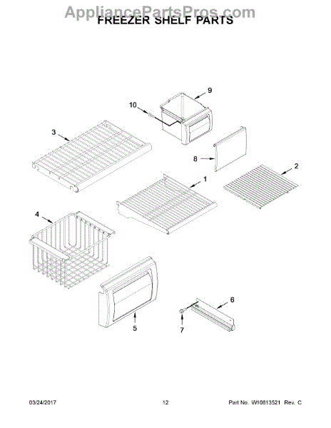 This basket front replaces the plastic panel on the front of a freezer wire basket. It restores a solid barrier so food stays contained and helps the basket slide in and out smoothly.