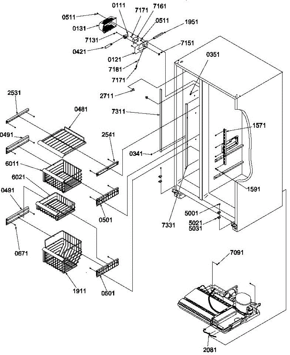 Parts for Amana SRDE520TW-P1308701WW: Freezer Shelves And Light Parts
