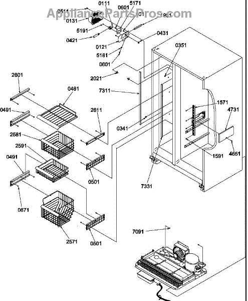 Parts for Amana SRDE528TW-P1312601WW: Freezer Shelves And Light Parts