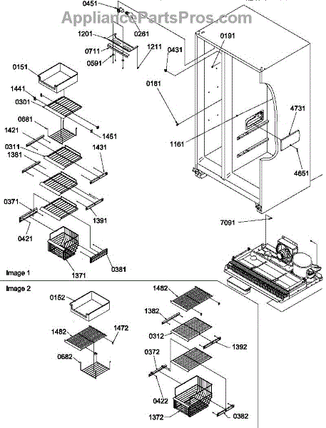 Parts for Amana SS25TE-P1194004WE: Freezer Shelves And Light Parts