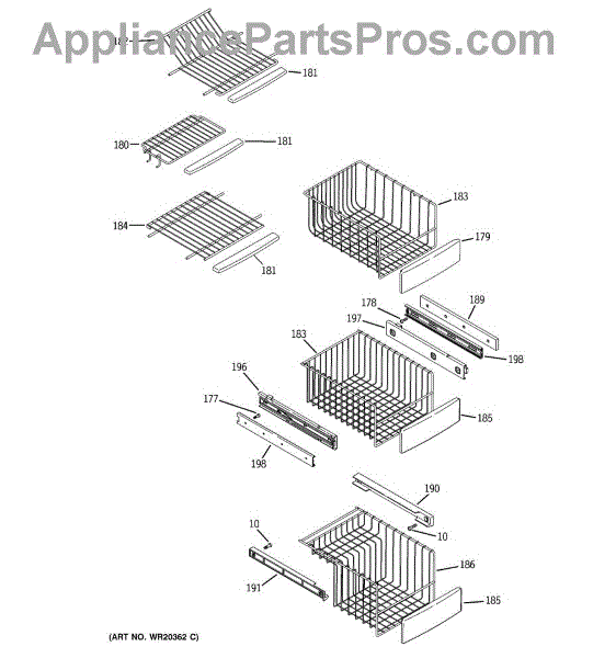 The Handle is an OEM replacement part for GE refrigerators. It is the outer component that allows for opening and closing access to the refrigerator or freezer compartment drawer. Causes of a bad handle can include normal wear over time as handles experience constant friction from opening and closing. Symptoms of a bad handle include: