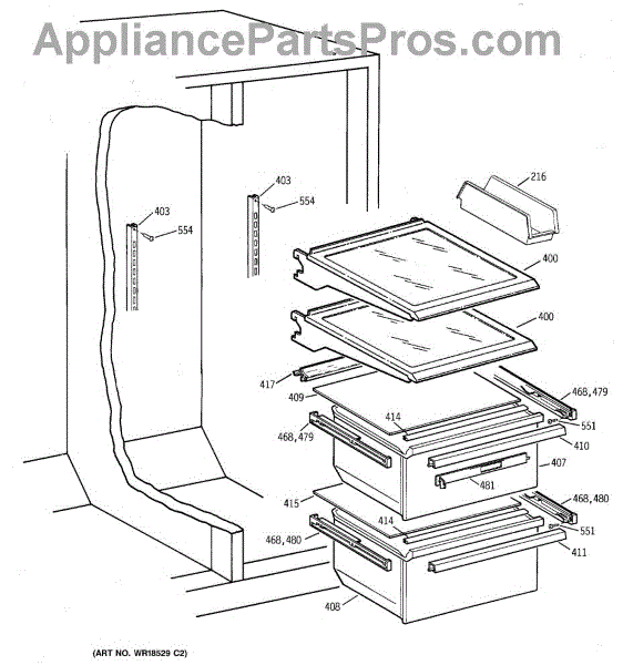 Parts for Ge GFSM6KEXABG: 04 - Freezer Shelves Parts