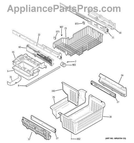 This rail holder secures the lower right shelf/rail inside the freezer, restoring proper support and alignment for drawers and shelving. Replaces a worn or broken holder to stop sagging or uneven drawers. What it does: