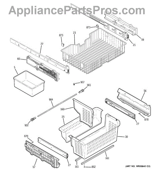 This rail holder secures the lower right shelf/rail inside the freezer, restoring proper support and alignment for drawers and shelving. Replaces a worn or broken holder to stop sagging or uneven drawers. What it does: