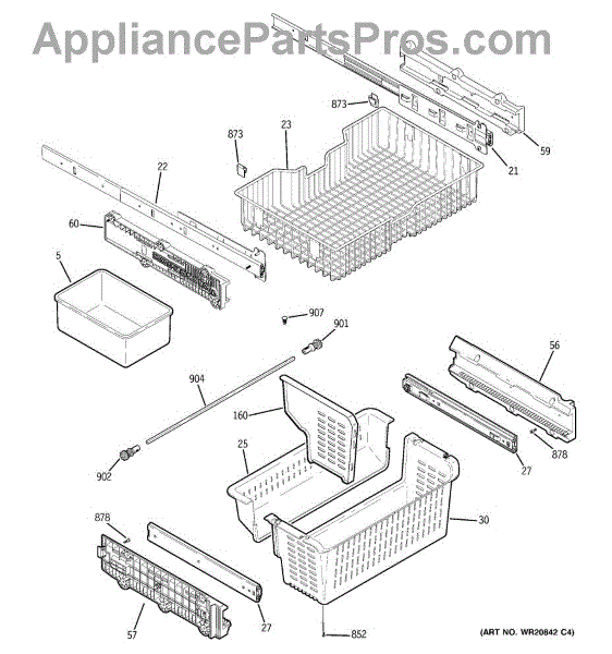 This rail holder secures the lower right shelf/rail inside the freezer, restoring proper support and alignment for drawers and shelving. Replaces a worn or broken holder to stop sagging or uneven drawers. What it does: