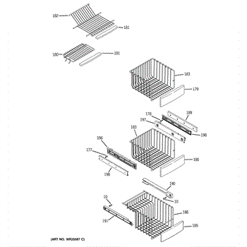 This support slide secures and guides a refrigerator freezer basket so it opens and closes smoothly. It replaces worn or broken slides to restore proper basket movement and prevent sagging or jamming. What it does: