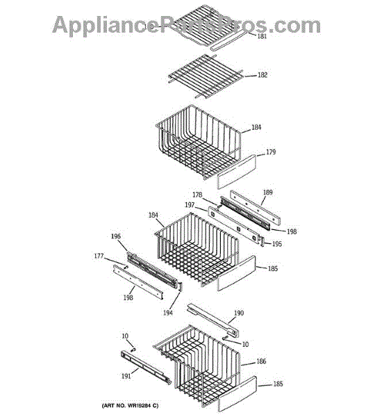 Parts for Ge PSC23NGPACC: Freezer Shelves Parts