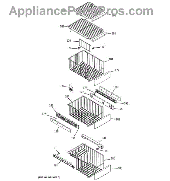 This support slide secures and guides a refrigerator freezer basket so it opens and closes smoothly. It replaces worn or broken slides to restore proper basket movement and prevent sagging or jamming. What it does: