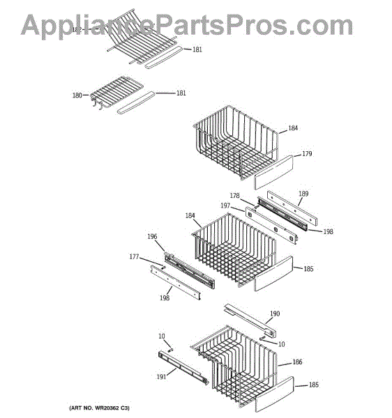 The Handle is an OEM replacement part for GE refrigerators. It is the outer component that allows for opening and closing access to the refrigerator or freezer compartment drawer. Causes of a bad handle can include normal wear over time as handles experience constant friction from opening and closing. Symptoms of a bad handle include: