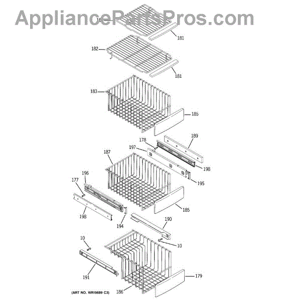 • Remove drawer/basket per manufacturer instructions to access and replace the slide; handle glass or plastic parts carefully.