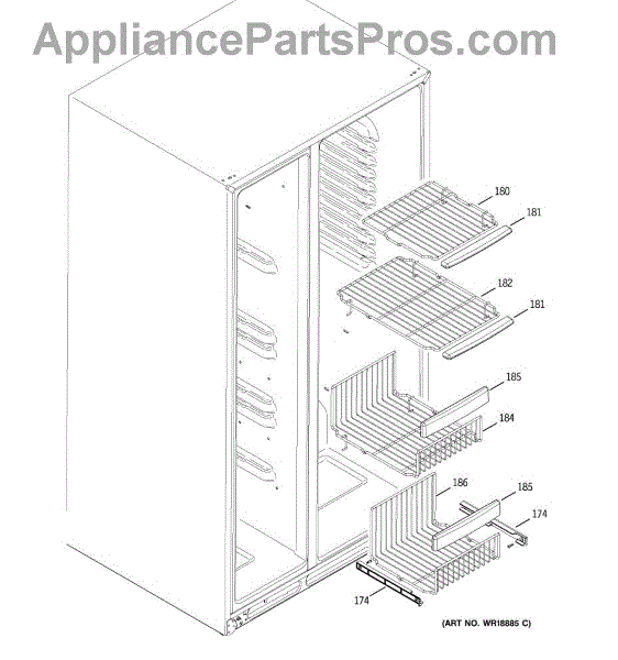 The Shelf Slideout is an OEM part for GE freezers. It is designed to provide convenient and organized storage within the freezer compartment, allowing easy access to stored items. The slideout feature enables users to pull the shelf forward, making it simpler to reach items stored at the back.