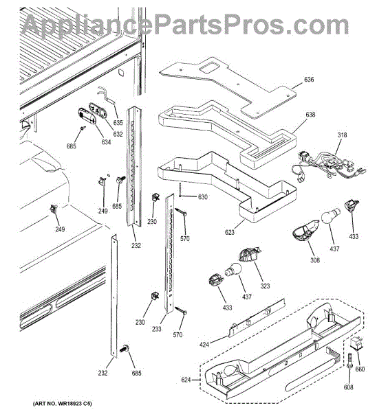 Parts for Ge PTS25LHRARCC: 05 - Freezer Shelves Parts