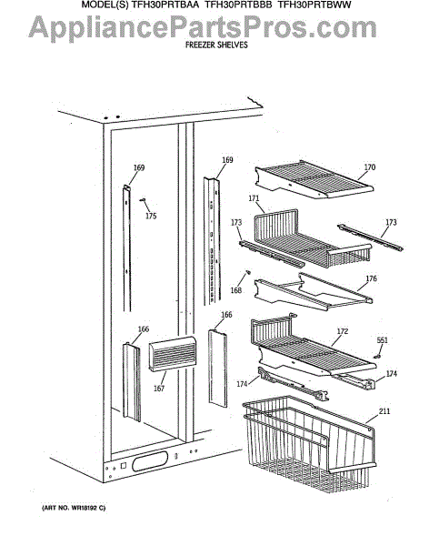 Parts for Ge TFH30PRTBWW: 04 - Freezer Shelves Parts