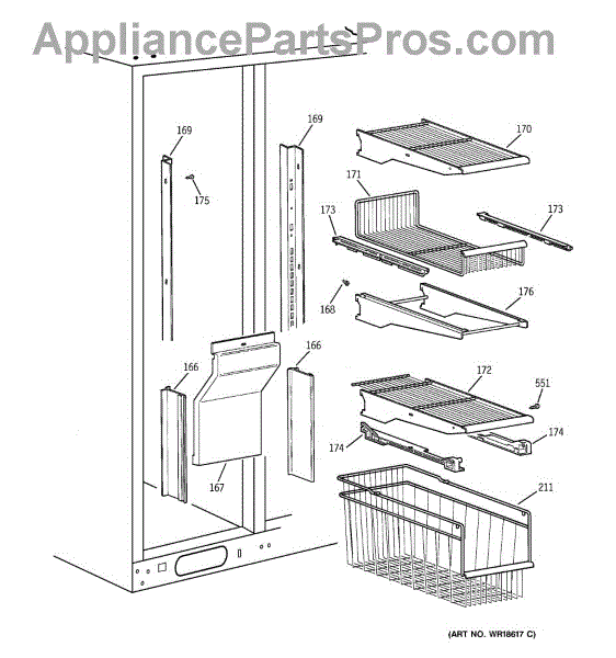 Parts for Ge TPG24BFCCWW: 04 - Freezer Shelves Parts