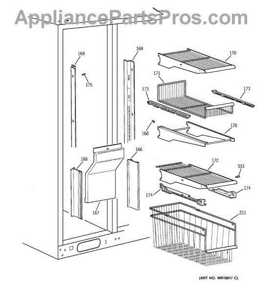 Parts for Ge TPG24BFDBWW: 04 - Freezer Shelves Parts