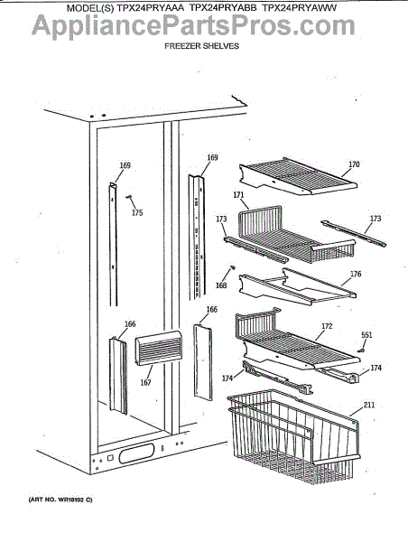 Parts for Ge TPX24PRYAAA: 04 - Freezer Shelves Parts