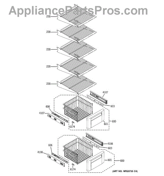 Removable freezer basket assembly for organizing frozen foods in your side-by-side refrigerator. Replace cracked, broken, or missing baskets.