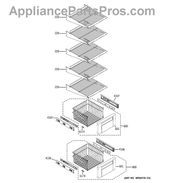 This freezer basket assembly replaces a damaged or missing freezer storage basket to keep frozen items contained and organized for easy access. It restores the freezer's storage layout and prevents small items from shifting or falling through. What it does: