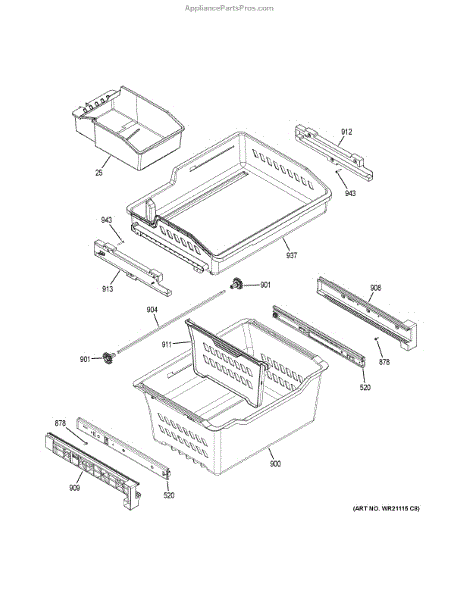 The Slide Basket Lower Fz is an OEM part for GE freezers. This slide is responsible for smoothly gliding the freezer basket or drawer in and out, allowing for easy access and organization of frozen food items. It ensures that the freezer basket or drawer operates smoothly, making it effortless to retrieve items and maximize storage space.