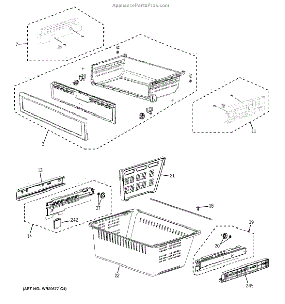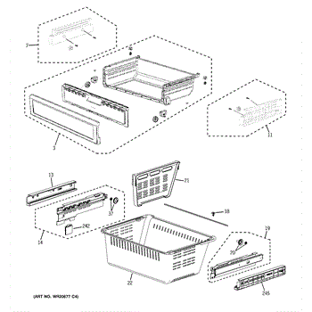 This is a GE refrigerator right drawer slide rail. The drawer slide rail makes opening the refrigerator drawers easier by providing them a track to slide on. If the drawers on the refrigerator have gotten hard to open or are jammed, the problem is most likely with the slide rails. These parts can become damaged over time from general wear or overuse. Any heavy impacts could also bend or warp these rails, warranting the need for a replacement. Do not attempt to bend the drawers to fit the rails, as this may cause further damage. To install the new slide rail, make sure the old one is removed, and the holes for the screws are clear. The new part should come with new fastening screws. Line the rails up with the corresponding holes and insert the screws one by one. Insert the second slide piece onto the drawer with the appropriate screws for this piece. Tilt the drawer at an angle and position the rollers into the rail and slowly insert the drawer.This is a genuine OEM replacement product sourced directly from GE. This part is compatible with GE and Hotpoint appliances.