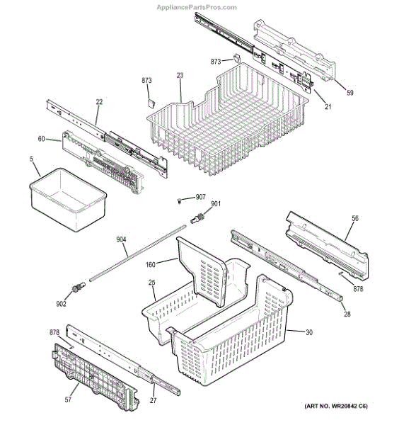 This rail holder secures the lower right shelf/rail inside the freezer, restoring proper support and alignment for drawers and shelving. Replaces a worn or broken holder to stop sagging or uneven drawers. What it does: