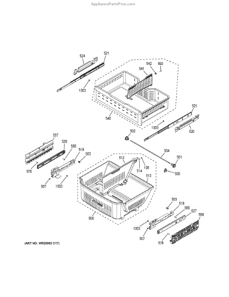 This is a replacement bottom divider basket. This is a genuine OEM part made by General Electric and has been sourced directly from the manufacturer. This part is intended to replace a cracked or defective divider basket in a variety of different refrigerator models. This divider basket is intended for the bottom drawer of the refrigerator.This divider slots into the center of the bottom refrigerator basket. It can be used to divide the basket drawer into two sides to keep food separated and organized. Over time and with regular use, the divider can become broken or cracked and will require replacing. For safety purposes, always ensure the refrigerator is completely disconnected from its power source before starting any repair work. No special tools are needed to install this part; simply slot the divider into place. Please make sure to follow appropriate safety precautions when attempting to fix any appliances. For more accurate information on how and where to install this bottom divider basket, the appropriate owner's manual and included diagrams should be referred to.As an authentic replacement part, this divider basket is suitable for use on several different models of refrigerators manufactured by General Electric and Hotpoint. This is a genuine part made of high-quality, durable plastic and is sold individually.