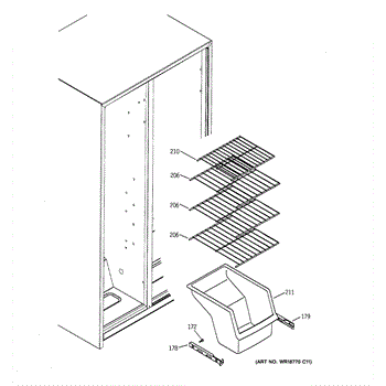 • Remove any freezer drawers or shelves as needed for access; align basket rails and slide into place.