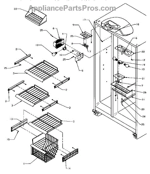 Parts for Amana SZD25S5E-P1190415WE: Freezer Shelving & Ref Light Parts