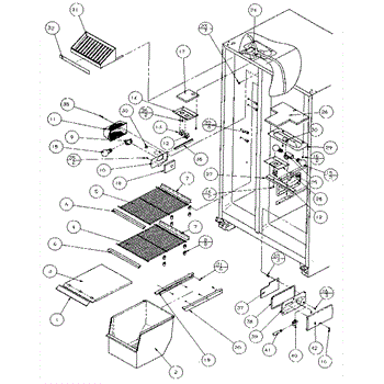 Parts for Amana 36271-P1121801W: Freezer Shelving And Refrigerator Light Parts