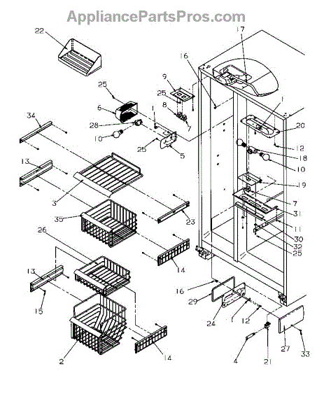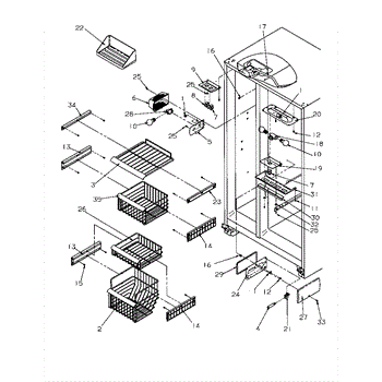 Parts for Amana SBD20S4E-P1190001WE: Freezer Shelving And Refrigerator Light Parts