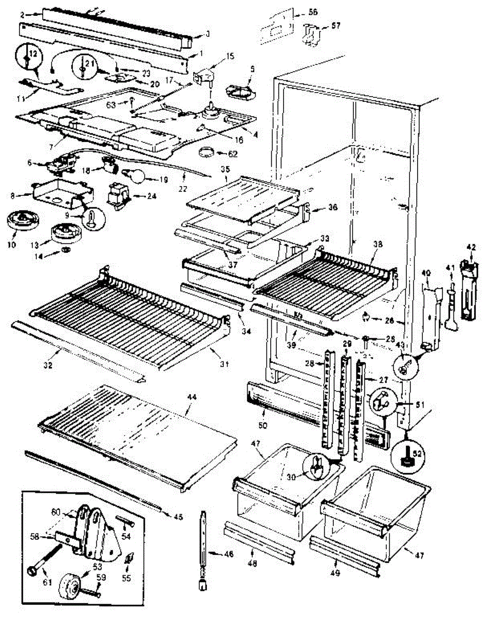 Center support that stabilizes the crisper cover above drawers to prevent sagging. Replace if cracked, broken, or missing to restore proper alignment.