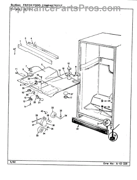 This factory screw secures appliance components to their mounting points. Replace missing, worn, or stripped hardware to restore a tight fit, proper alignment, and quieter operation across the affected assembly.