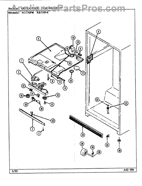 This factory screw secures appliance components to their mounting points. Replace missing, worn, or stripped hardware to restore a tight fit, proper alignment, and quieter operation across the affected assembly.