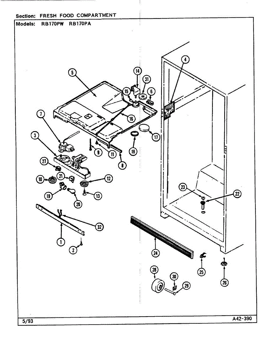 Parts for Magic Chef RB170PW / DG25A: 02 - Fresh Food Compartment Parts