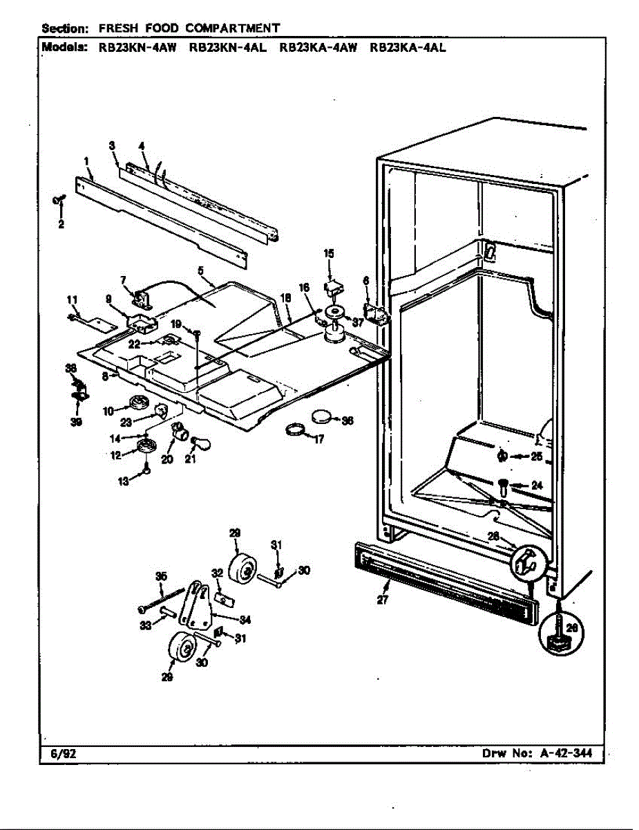 This factory screw secures appliance components to their mounting points. Replace missing, worn, or stripped hardware to restore a tight fit, proper alignment, and quieter operation across the affected assembly.