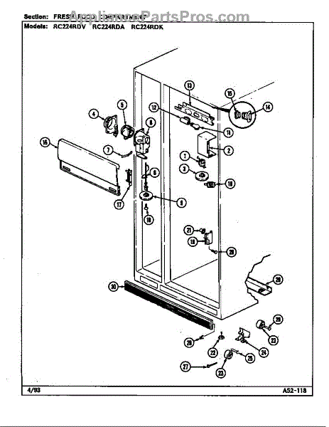 Parts for Magic Chef RC224RDA/DS35A: Fresh Food Compartment (Rc224rda / Ds37a) (Rc224rda / Ds37b) (Rc224rda / Ds35a) (Rc224rda / Ds36a) (Rc224rda / Ds36b) Parts