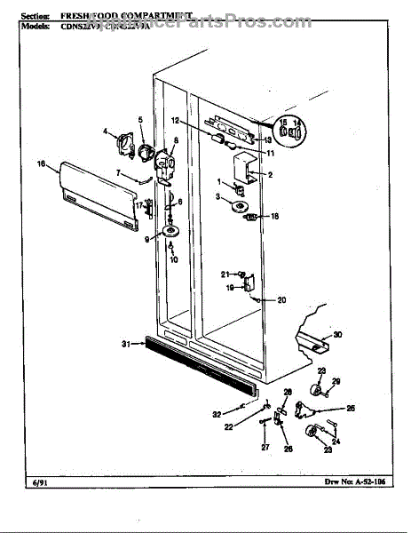 Parts for Maytag CDNS22V9A/BR35F: Fresh Food Compartment (Cdns22v9 / Br35e) (Cdns22v9 / Br35f) (Cdns22v9a / Br36e) (Cdns22v9a / Br36f) (Cdns22v9a / Br35f) Parts