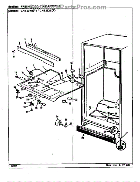 This factory screw secures appliance components to their mounting points. Replace missing, worn, or stripped hardware to restore a tight fit, proper alignment, and quieter operation across the affected assembly.