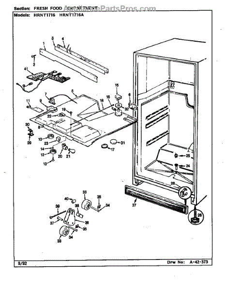 This factory screw secures appliance components to their mounting points. Replace missing, worn, or stripped hardware to restore a tight fit, proper alignment, and quieter operation across the affected assembly.