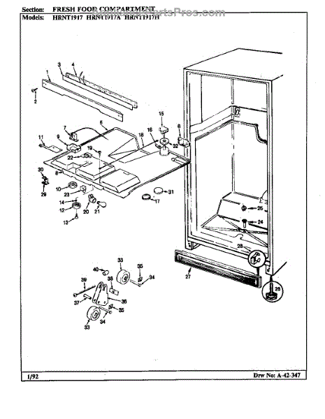 This factory screw secures appliance components to their mounting points. Replace missing, worn, or stripped hardware to restore a tight fit, proper alignment, and quieter operation across the affected assembly.
