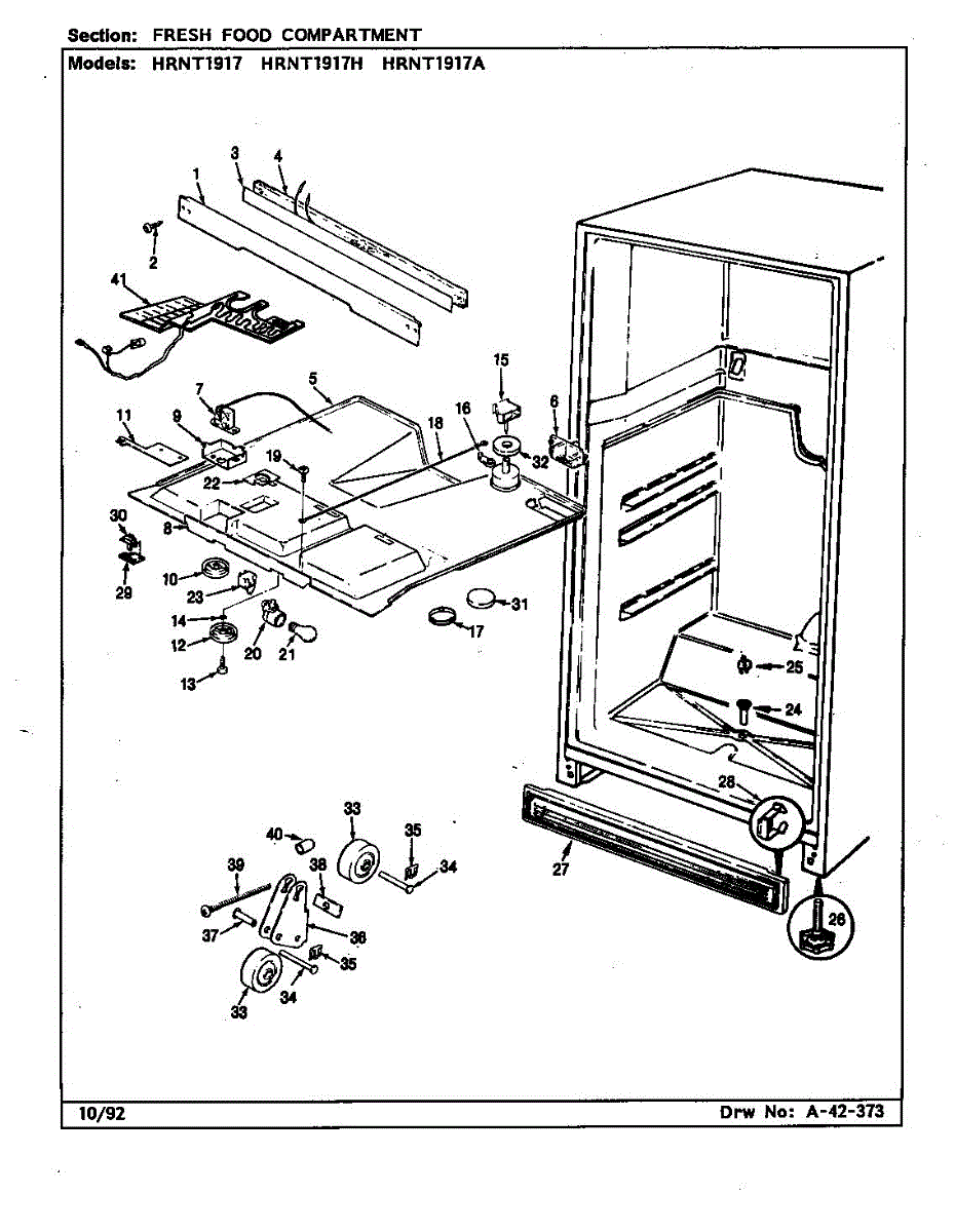 This factory screw secures appliance components to their mounting points. Replace missing, worn, or stripped hardware to restore a tight fit, proper alignment, and quieter operation across the affected assembly.