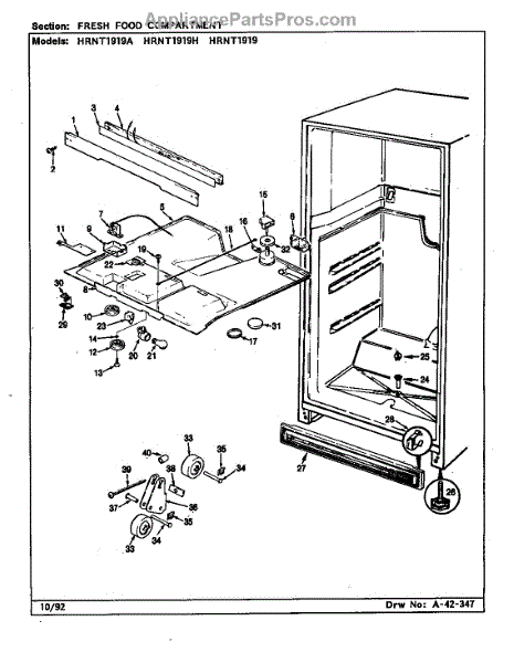 This factory screw secures appliance components to their mounting points. Replace missing, worn, or stripped hardware to restore a tight fit, proper alignment, and quieter operation across the affected assembly.