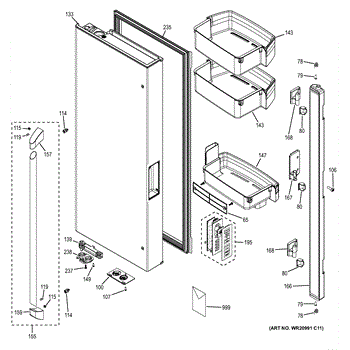 The Door Bin is an OEM replacement part for GE refrigerators. It is designed to fit on the refrigerator door, providing storage space for bottles, jars, and other items.