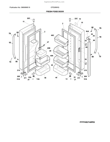 Replace your refrigerator's fresh food door assembly if cracked, damaged, or warped. This door installs on the main compartment of bottom-mount models.