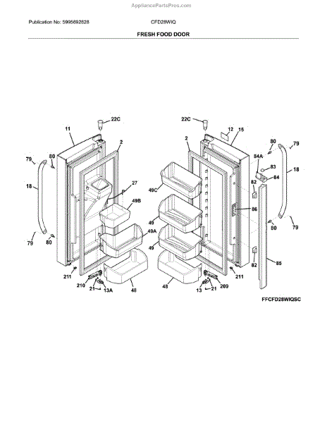 Parts for Crosley CFD28WIQSE: Fresh Food Door Parts