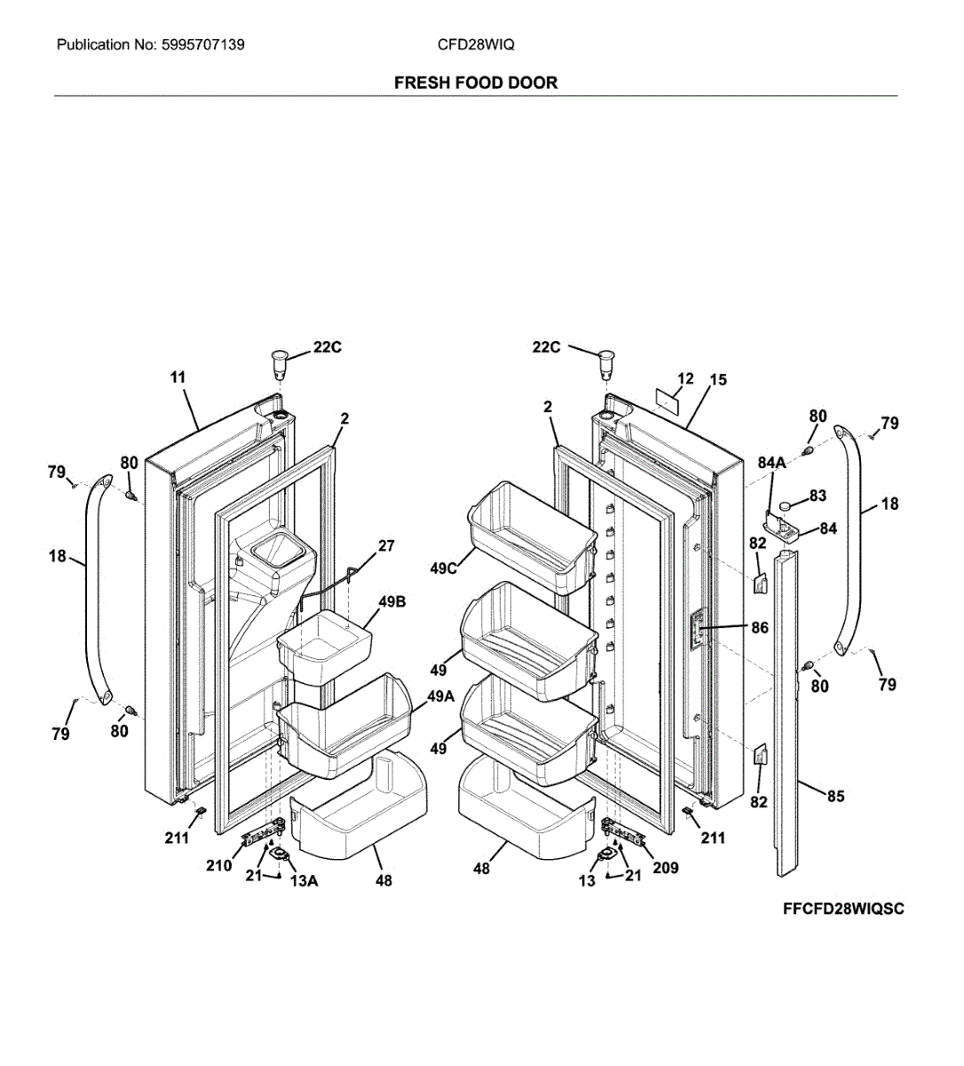 Outer door assembly restores your refrigerator's appearance and secure closure. Replace if dented, damaged, or sealing poorly. Verify fit with your model number before ordering.