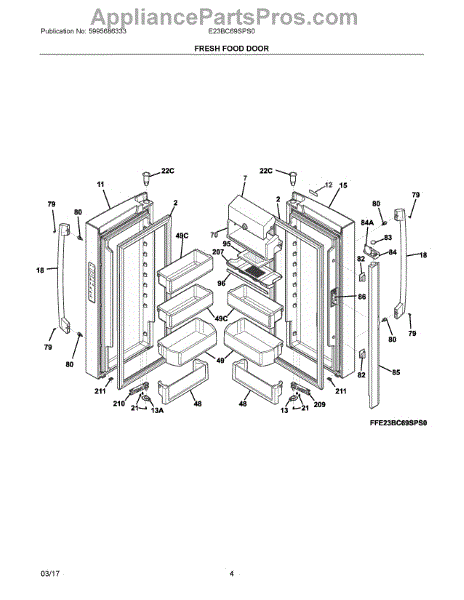 This door bin mounts to the refrigerator door to hold bottles, jars, and condiments. Replacing a cracked or missing bin restores secure on-door storage, prevents spills, and keeps frequently used items organized and easy to access. What it does: