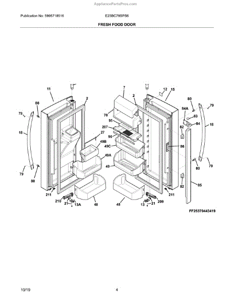 Parts for Electrolux E23BC79SPS6: Fresh Food Door Parts